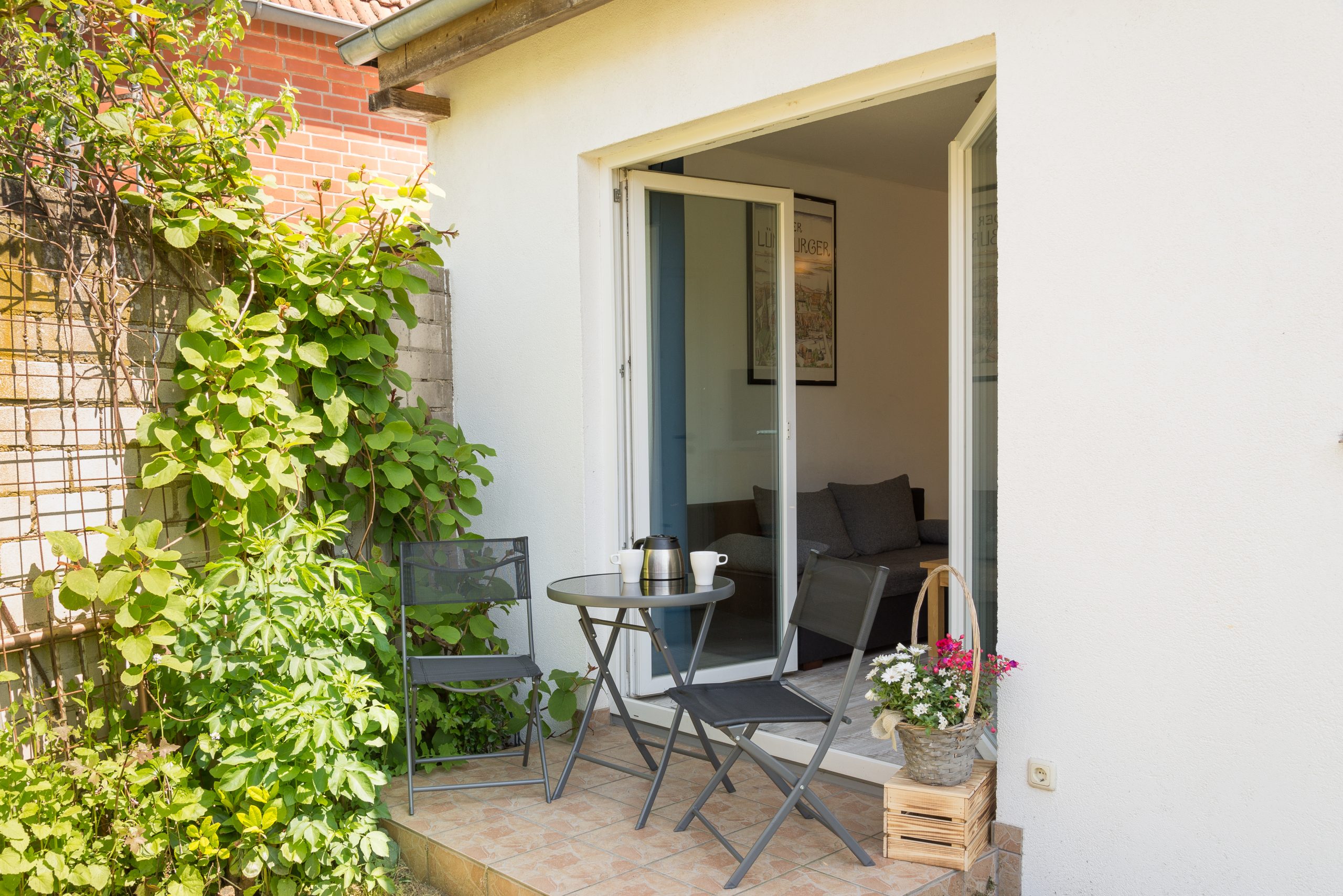 1-Zimmer Wohnung mit Wohn- und Schlafbereich und kleiner Terrasse